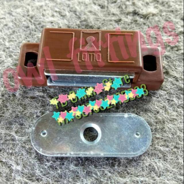 Door Stopper / Magnet Penahan Pintu Lemari.Bisa digunakan untuk Lemari pintu ukuran sedang - besar, rak piring, pintu kitchen set, kotak kayu, pintu espanda kawat nyamuk, pintu gerobak, dll...Merk : LAMA asli originalUkuran : M / MediumMaterial : plastik grade terbaik.Dimensi plat besi : 3,6 cm x 1,3 cmDimensi magnet : 4,7cm x 1,7cm x 1,4 cmHarga per 1pc, sudah termasuk skrup kecil untuk pemasa