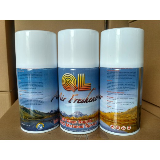 Selamat DatangKAMI BARU, TAPI SANGAT PROFESIONAL!!SEGERA BUKTIKAN :)~ Kami adalah Distributor Refill Pengharum Ruangan terbesar di Bekasi ~Menyediakan Refill QL yang bisa di pasang pada unit mesin Glade.Ukuran:Refill Pengharum Ruangan isi : 320ml (Ukuran kaleng sama dengan Glade, isi lebih banyak dibanding Glade. QL 320ml : Glade 300ml )Tinggi Kaleng : 13,5cmAroma Refill Pengharum Ruangan (Updated): Aroma Buah Segar :1. Apel ( Segar dan Wangi )2. Anggur ( Segar dan Wangi )3. Bubble Gum ( Aroma Permen karet )4. Lemon ( Segar dan Wangi )5. Lemon Soda ( Segar dan Wangi )6. Melon ( Segar dan Wangi )7. Mangga ( Segar dan Wangi )8. Orange ( Segar dan Wangi )9. Sunkist ( Segar dan Wangi )10. Strawberry ( Aroma Tajam dan Kuat )11. Vanilla ( Aroma buah Vanilla / Roti )Aroma Nuansa Alam menenangkan :12. Green Tea ( Alam Pegunungan Teh )13. Evergreen ( Alam padang rumput )14. Ocean Fresh ( Alam segar angin pantai )Aroma Bunga :15. Anggrek ( Aroma Tajam dan Kuat )16. Jasmine/ Melati (Aroma Tajam dan Kuat)17. Lavender ( Aroma Tajam dan Kuat )18. Lotus ( Aroma Tajam dan Kuat )19. Rose / Mawar ( Aroma Tajam dan Kuat )20. Violet ( Aroma Tajam dan Kuat )21. Citrus ( Aroma Wangi dan Segar )Aroma Teraphy : 22. Herbal Teraphy ( Aroma rempah rempah )23. Teraphy Forest Green Aroma Parfum Wangi :24. Floral Blossom 25. Romantic Beauty26. Shadow27. Sparkle FreshCafe & Karaoke28. Anti Tobacco ( Wangi dan netralisir asap rokok )29. Coffe / Kopi ( Aroma Kopi yg sgt kuat )Mohon maaf,karena Refill Pengharum Ruangan ini mengandung aerosol, pilih jasa kurir yang tepat pada saat memilih jasa kurir, sbb:- Wilayah Jabodetabek = JNE, Tiki, Wahana- Luar Jabodetabek tapi masih Pulau Jawa = Hanya WAHANA- Luar Pulau = Tidak bisaTerima