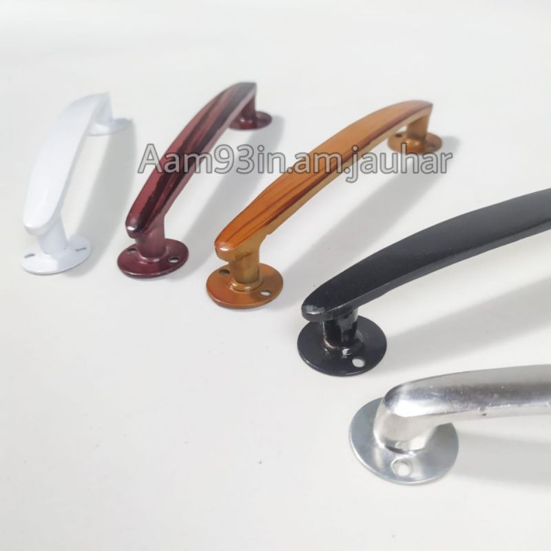 Harga barang ini bijian ya kakBayar 6rb dapat 1 biji ya kakFungsiGagang handle lemariGagang handle laci & kicensetBahan full alumunium niumSepatu kaki bawahnya dari plat baja besi dilapisi tahan karatMotiv oval minimalis rampingFinishingnya ber varianAda yg polis original nium glossyAda yg cet tahan gores powder cottingAda yg cet open poxy tahan gores motiv kayu gelap dan kayu cerah. Natural dan mahoniPanjang full 15 cm atau 6 inchJarak antara 2 as baut 13 cmTinggi 2,5 cmDiameter lepek sepatu kaki plat 2,6 cmKetebalan platnya 1,1 mmKetebalan pegangan gagang handle nya 5 mmHarga sudah plus baut skrup paku 4 bijiBerat efektif per biji 50