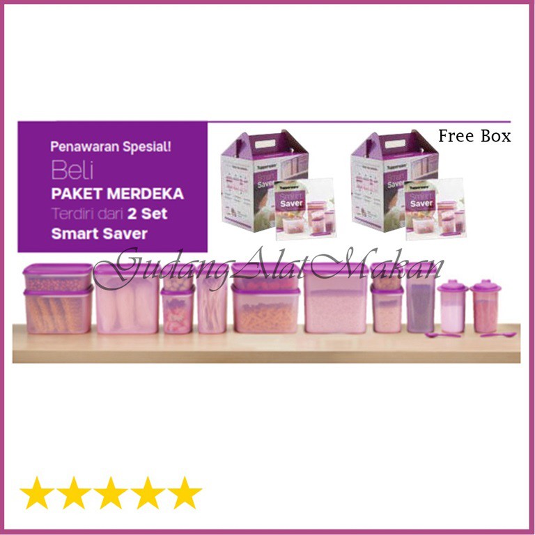 Terdiri dari: a. Smart Saver Oval #1 // 500 ml / 18.8 x 9 x 6.2 cmb. Smart Saver Oval #2 // 1.1 l / 18.8 x 9 x 11.7 cmc. Smart Saver Oval #3 // 1.7 l / 18.8 x 9 x 17.2 cmd. Smart Saver Square #1 // 1.1 l / 18.8 x 18.8 x 6.2 cme. Smart Saver Square #2 // 2.5 l / 18.8 x 18.8 x 11.7 cmf. Smart Saver Square #3 // 3.9 l / 18.8 x 18.8 x 17.2 cmg. Bonus! Bumbu Containe