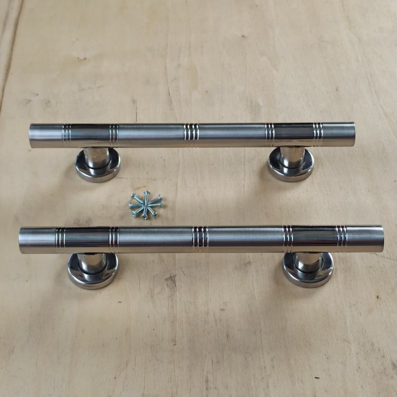 Panjang 25 cmLebar 10 cmTinggi 4 cmBerat efektif per pasang 300 gramAs baut jarak cmPanjang 25 cmTinggi 4 cmBahan pegangan tengah stainless steel 203 0,5 mm ¾ inch / 2 cmFinishing dof lis kombinasi fullDiameter sepatu kaki lepek 3,4 cmSkrup 8 bijiDengan 8 lobang