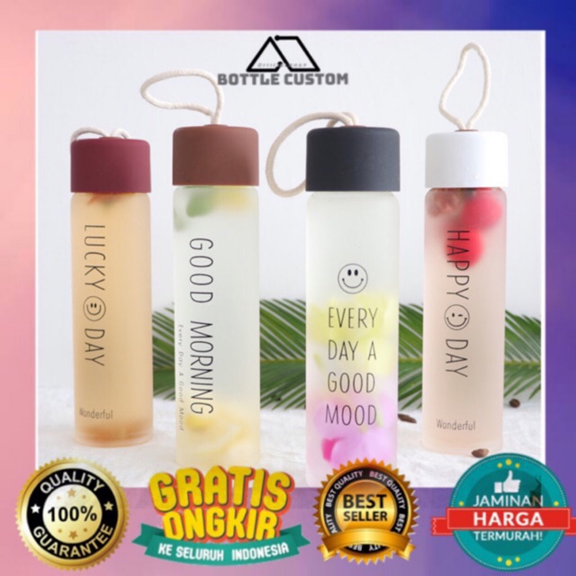 LUCKY DAY botol minum 360ml ( 1kg muat 4pc ) Bahan kaca Ukuran : 21.3x3.8x5.5cm#botolminum #botolminumluckyday#mybottl#mybottlemurah#mybottleindonesia#mybottlecustom #boto