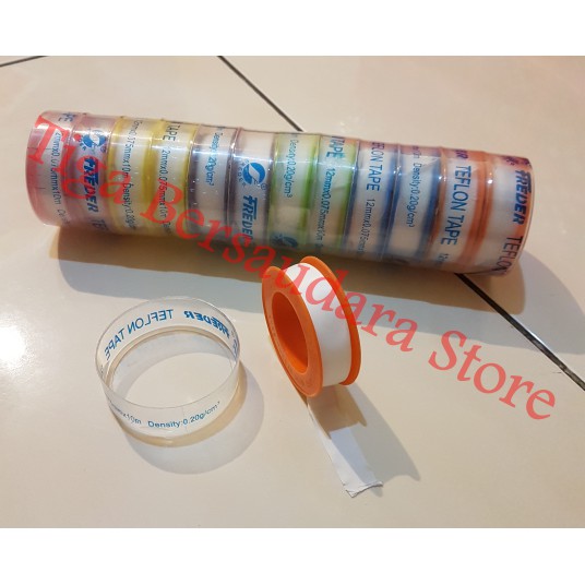 Seal tape / Teflon tapemerk Frederukuran 12 mm x 0.075 mm x 10 mDensity 0.20 g/cm3Sale tape ini sangat berguna agar kran dan pipa semakin rapat dan tidak memberikan celah bagi air untuk menyusup keluar tanpa ijin.Jadi sale tape dapat mencegah kebocoran terjadi pada kran yang anda pasang.Jika tidak dipasangi sealtape, air akan mudah mengalir melalui celah-celah antara ulir kran dan