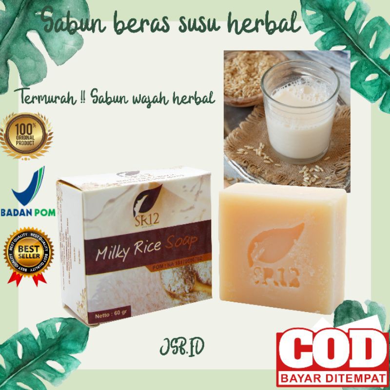 PRODUK SELALU READY SILAHKAN DI ORDER FREE BUBLE WRAP DAN KARDUS PACKING DI JAMIN AMAN SAMPE RUMAH MILKY RICE SOAP SR12 HERBALPOM : NA 18170500702- aman dan tidak mengandung mengandung bahan kimia- sesuai untuk semua jenis kulit termasuk kulit kering dan sensitif- dapat digunakan pada kulit wajah maupun badanFungsi untuk kulit wajah:1. khasiat susu dan beras membuatkan kulit muka anda lebih cerah dan lembut.2. menghilangkan semua kotoran, minyak, dan sel kulit mati3. membantu menghilangkan jerawat & kulit berminyak4. bisa digunakan sebagai pencuci muka untuk membersihkan make up pada kulit wajah.Fungsi untuk kulit tubuh:1. menghilangkan bekas hitam di ketiak, siku dan selangkangan paha, dll.2. memberi kesegaran sepanjang harimenghilangkan bau badanVitamin dan mineral dalam susu akan memelihara kulit Anda. Memberikan kulit perawatan pelembab setiap kali Anda menggunakan sabun.Bahan Aktif: Beras susu, Vitamin B3, Vitamin E, minyak zaitun, coconut oil, Gliserin Alam.Cara pakai : Usapkan secara lembut seluruh tubuh yang telah dibasahi airLalu bilas hingga bersihFormula: 100% Beras susu sabun untuk semua jenis kulit.#sr12#mencerahkan#menghilangkanflekhi