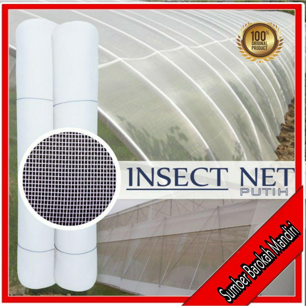 Bentuk anyaman StriminDimensi : Lebar 100 cm Panjang 50 meter (1 rol)Bahan : PolyEthilenNet Mesh 50Warna : PutihInsect net / insect screen biasa digunakan pada dinding green house (rumah tanaman). Fungsi dari insect net / insect screen adalah menghalangi agar serangga atau hewan penggangu (hama) tidak dapat masuk ke rumah tanaman (greenhouse).Bahan ini banyak digunakan untuk mencegah serangga masuk kedalam rumah, dipasang pada pintu, jendela atau lubang angin. Banyak juga digunakan untuk mencegah serangan serangga hama pada lahan pertanian atau greenhouse.Harga diatas adalah harga per meter.keterangan :- insect net 50 mesh, artinya ada 50 lubang dalam 1 inch2,jadi besar lubang sekitar 0.300 mm2- Minimal pembelian lebar 100 cm x panjang 1 meter (Rp. 8750,-) , jadi harga satuan diatas adalah insect net dengan ukuran 100 cm persegi.- Jadi pembelian tergantung dengan kebutuhan anda, misal : pembelian 5 meter, jadi barang yang anda dapatkan panjang 5 meter x lebar 100 cm (lebar selalu 100 cm, panjang sesuai kebutuhan