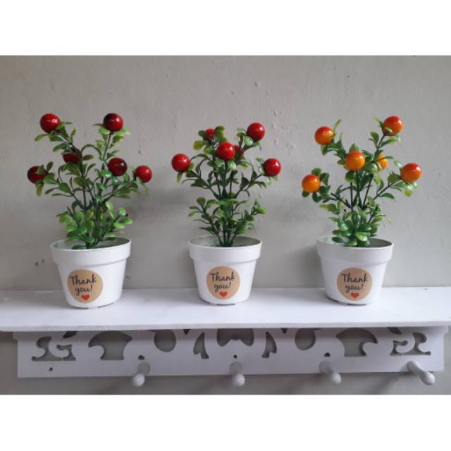 Tolong di baca sebelum order kakak Set bunga + pot ukuran mini,sangat cocok untuk hiasan rak,baik rak dinding atau rak susun.Pot mengunakan bahan plastik.Ukuran pot :D = 8 cmT = 7 cmTinggi keseluruhan -+ 15 cm.Buah berjumlah 6 Pengiriman setiap jam 5 sore,hari sabtu transfer lewat jam 11: 00 WIB dan transfer hari minggu,kirim hari senin. Dan harap maklum karena expedisi libur. Happy shopping #bungaplastik#bungahiasplastik#bungashabby#shabbyjakarta#shabbyhomedecor#shabbylover#bungapalsu#bungaartifisial#pot#dekorasi#hiasanr
