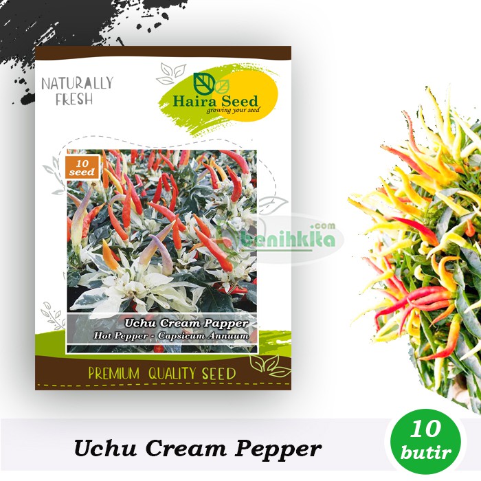 Cabe Hias Uchu Cream sangat mirip dengan Cabe Hias Garda Firework atau Medusa, yang membedakan adalah warna daun yang mempunyai warna putih dan hijau atau bisa disebut varigata. Cabai ini layak dijadikan koleksi karena keindahan buah dan daun yang unik, buah mempunyai bentuk panjang dengan warna gradasi yang menarik .Bukan hanya sebagai hiasan, tanaman cabai ini dapat dikosumsi.umur panen biasanya sekitar 6 s/d 8 minggu setelah semai.Produsen: Haira SeedNama Variates: Uchu CreamNama Latin: Capsicum AnnuumType Benih: Heirloom, Open-pollinatedType Tanaman: AnnualWarna Buah: Warna-Warnilama Berkecambah: 5-11 HSSDaya Kecambah: 90%Kemurnian: 95%Isi Benih Perkemasan: 10 butirExp: 25 08 2022Ket: Kemasan Original PabrikRekomendasi :Dapat ditanam dibedengan, Pot atau polybag ukuran diameter 30-40 cm, jarak tanam 30-40 cm atau bisa juga mengunakan sistem Hidroponik*) Ketahanan penyakit, umur panen, bobot dan potensi hasil tergantung pada lingkungan dan perlakuan budidayanya.#cabehias #cabepelangi #beni