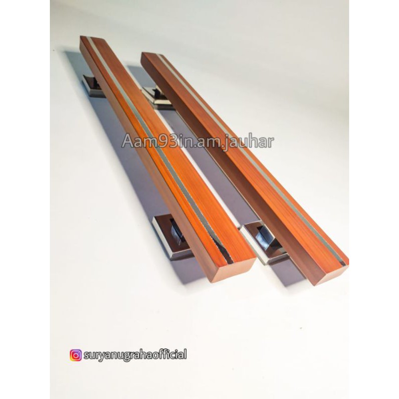 Name: Handle Pintu Rumah Kotak 2x4 X 45 Cm Minimalis Tarikan Kayu Gagang Kunci Natural Coklat Ful Stainles