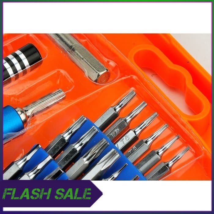 JAKEMY JM-8126 54-in-1 dengan Bahan Baja campuran CR-V (Chrome-Vanadium) sangat cocok untuk kebutuhan perbaikan alat elektronik, laptop, komputer, Macbook Pro/Air, iPhone, Android, Gadget, Console, XBOX, PS, dll.Obeng ini hampir sama dengan iFixit 54 Bit Driver Kit yang harganya sekitar $29Details mata obeng:4*Pentalobe (Bintang) screwdriver: 0.8, 1.2, 1.5, 2.0 (Apple iPhone, iPad, Macbook Pro/Air)7*Flathead (-) screwdriver: 1.0, 1.5, 2.0, 2.5, 3.0, 3.5, 4.09* Obeng phillips (+): #000, #00, #0, #1, 1.0, 1.5, 2.0, 2.5, 3.5 6*Chrome-Vanadium Steel Cylinder: M2.5, M3.0, M3.5, M4.0, M4.5, M5.04*JIS sizes: J000, J00, J0, J15* Obeng Torx: T3, T4, T5, T6, T7, 5* Obeng Torx Security/Tork Bolong Tengah: TS8, TS9, TS10, TS15, TS2011* Obeng Hex: H0.9, H1.3, H1.5, H2.0, H2.5, H3.0, H3.5, H4.0, H4.5, H5.0, H6.02* Obeng Tri-wing/Tri-point: Y0 2.0, Y1 3.01* Obeng Triangular: 2.31*U-Shaped screwdriver: U2.63*Square screwdriver: SQ0, SQ1, SQ21*Screwdriver handle1*Extension stick1*Converted rod barang tersedia boss , langsung dipesan , akan segera kami p