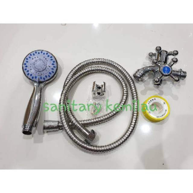 Flash Sale Perlengkapan di Kabupaten Kulon Progo Paket Hand Shower Mandi Set + Kran Tembok Cabang Double Baling Murah + Sealtape dari Tidak Ada Merek Kota Jakarta Barat